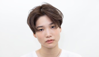 Stylist Yumi Uchida 潔くかきあげた前髪がこのスタイルのポイントかきあげた前髪と、ほんのりと顔にかかる毛先が大人っぽさと優しさのある印象にみせてくれます。毛先中心にゆるくかけたパーマが癖毛のような自然で柔らかい雰囲気に。毛先にいくにつれて明るく染めたレッドブラウンは艶を残しつつ髪の毛に表情をだしてくれます。前髪を伸ばしかけの方にもお勧めのスタイルです。 地肌をマッサージするように、根元にドライヤーの風を当てて毛先に水分が少し残るくらい乾かします。中間〜毛先にトリートメントフォームをピンポン玉2個分を目安になじませて自然乾燥するとスタイルの完成です。 More style Pick up style