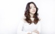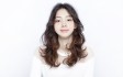 動きが出にくい重めなロングヘアーも、顔周りにたっぷりとレイヤーとゆるやかにかけたパーマのおかげで、フレッシュで軽やかな雰囲気に。