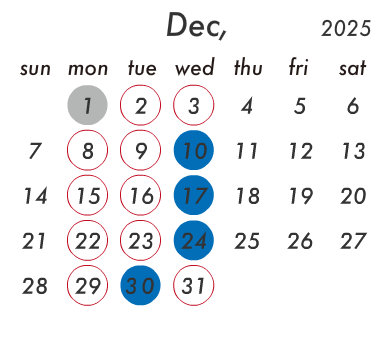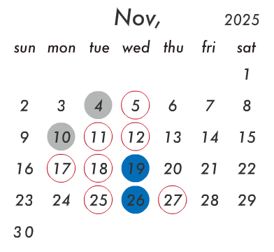 日により変動しますのでお電話にてお問い合わせください。